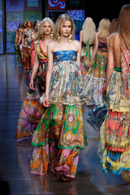 I always fall in love with every D&G collection, but this one reinvents all the others and creates a whole new revolution in the definition of denim, foulard-prints and Slightly oversized Shapes for finale dresses.