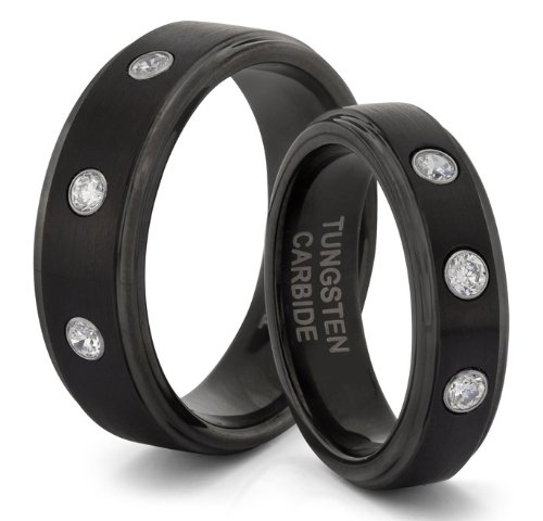 Are you looking for inexpensive price for His & Her's 8MM/6MM Tungsten Carbide Brushed Black Diamond CZ Wedding Band Ring Set (Available Sizes 4-14 Including Half Sizes) or reviewing price to find the best deal?